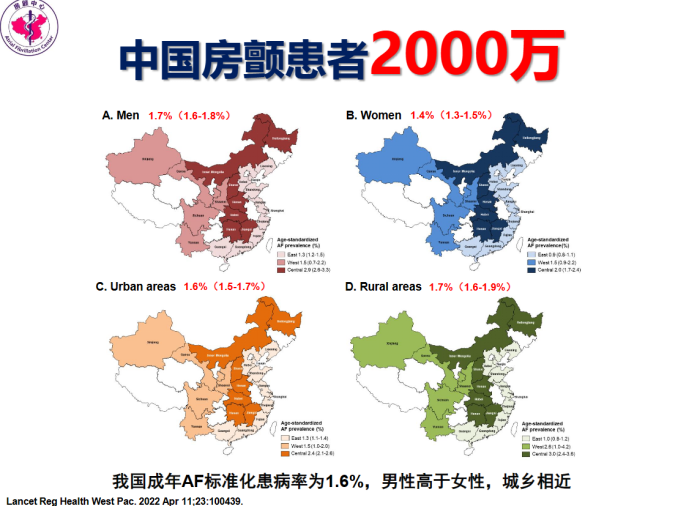 1.最新全国房颤流行病学调查显示,房颤存量患者接近2000万
