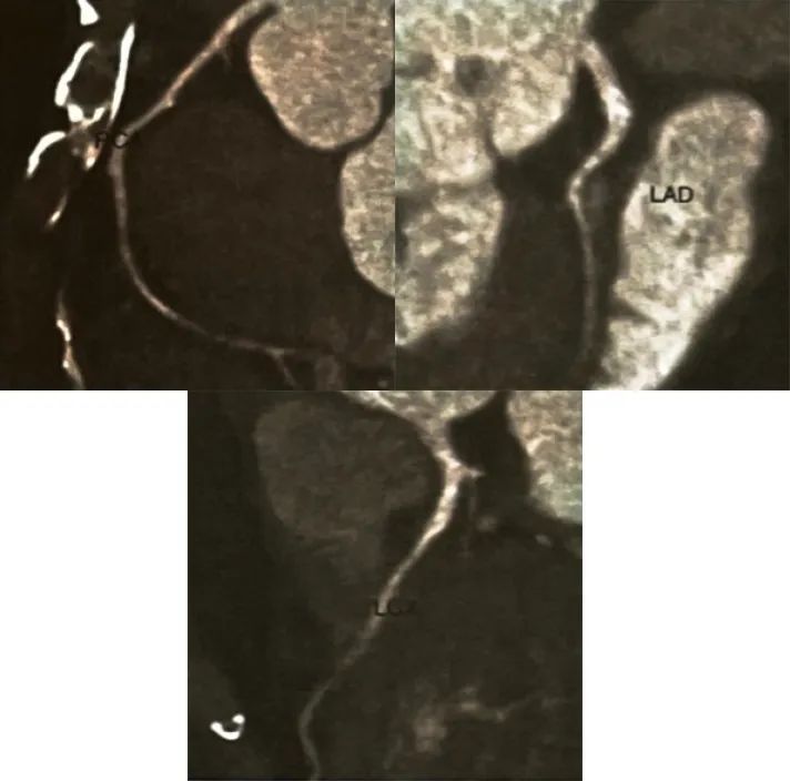 图3. 冠状动脉CT血管成像曲面重组图