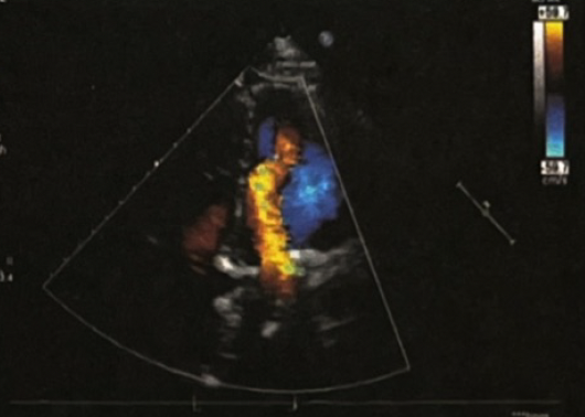 二尖瓣为人工瓣,瓣体呈金属强回声,未见明显瓣周漏。三尖瓣轻度反流。左心室舒张末内径(LVEDD)4.7cm,左心室射血分数(LVEF)56%
