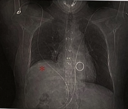 术后第1天开始感胸闷、喘气不适,伴呼吸困难,平卧位时明显,站立或步行时好转,无咳嗽、咳痰、发热等症状,且胸闷、喘气症状逐渐加重。查体:体温36.4℃,脉搏65次/分,呼吸18次/分,血压110/70 mmHg,血氧饱和度99%,肺部叩诊浊音,左侧呼吸音正常,右下肺呼吸音低,双肺未闻及干、湿啰音。心界无扩大,心率65次/分,律齐,各瓣膜听诊区未闻及杂音。腹部平软,无压痛及反跳痛,肝脾肋缘下未触及,肠鸣音正常。双下肢无水肿。复查NT-proBNP 336.40 pg/ml;血常规:白细胞计数10x109/L,中性粒细胞计数8.8x109/L,血红蛋白110 g/L。复查心电图:窦性心律,前壁导联T波低平。