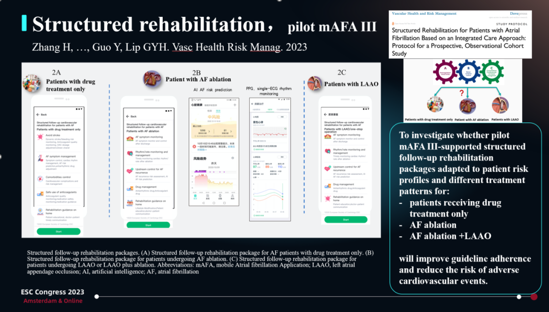 编者按:数字技术正在改变我们生活的世界。在荷兰阿姆斯特丹举行的2023欧洲心脏病学会年会(ESC 2023)上,解放军总医院郭豫涛教授介绍了团队应用可穿戴设备、移动医疗和人工智能在房颤预警、筛查、诊断、治疗和康复管理的应用。
