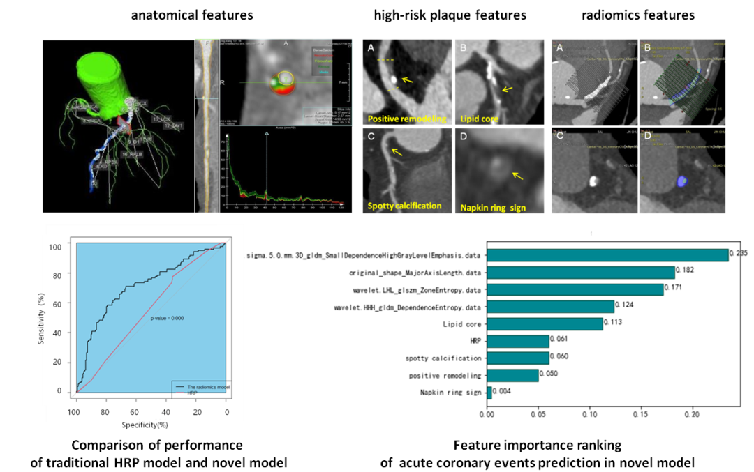 综上所述,该研究将传统的冠状动脉CTA的HRP特征与不稳定斑块的影像组学特征相结合,建立了一种预测的模型,可以更好地预测急性冠状动脉事件。与传统HRP特征模型相比,该模型的预测效能显著提高。