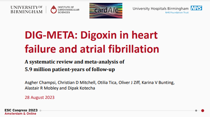 编者按:刚刚结束的欧洲心脏病学会年会(ESC 2023)上,Asgher Champsi教授在LBS专场公布了DIG-META(地高辛治疗心力衰竭和/或心房颤动患者)研究结果,本刊特约山东大学齐鲁医院卜培莉教授解读。