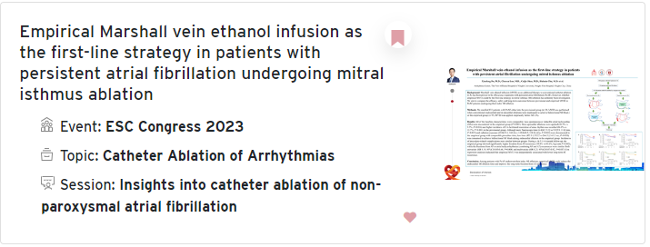 宁波大学附属第一医院储慧民教授团队的该研究成果,为今后临床进一步探究及确定MVEI消融是否可成为PeAF患者导管消融的一线策略提供了有力依据,这也是国内电生理中心在该领域的积极探索之一,该成果也已于近期成功刊登于《Frontier Cardiovascular of Medicine》杂志。在未来,其宝贵经验将在更大样本量的前瞻性、多中心、随机对照研究中得到进一步证实。我们也期待国内有更多中心将其宝贵经验在国际最顶级的学术舞台上与全球同行进行展示和交流。