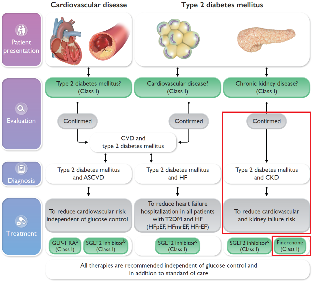 一、心血管两大指南同步更新:非奈利酮均获ⅠA推荐,以降低心衰住院风险及心血管事件和肾衰竭风险
