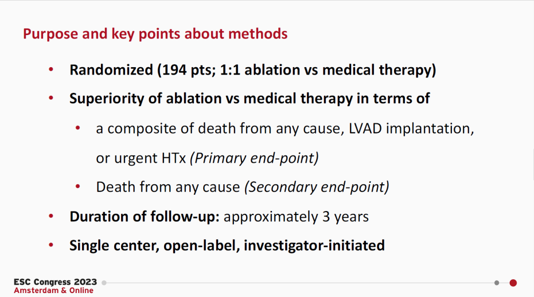 研究预设的次要终点是:全因死亡,心血管死亡,脑血管事件,房颤负荷下降,心衰恶化所致的计划外住院,生活质量评分,ICD治疗次数,ICD首次治疗时间,器械记录到的室速或室颤次数,房颤负荷,无房颤间期,左室射血分数,活动耐量,以及右心室起搏比例。
