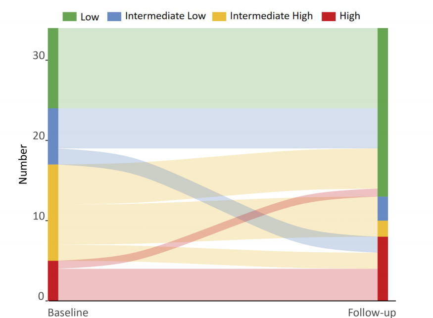 图2. 基线和随访中患者COMPERA 2.0危险分层的变化