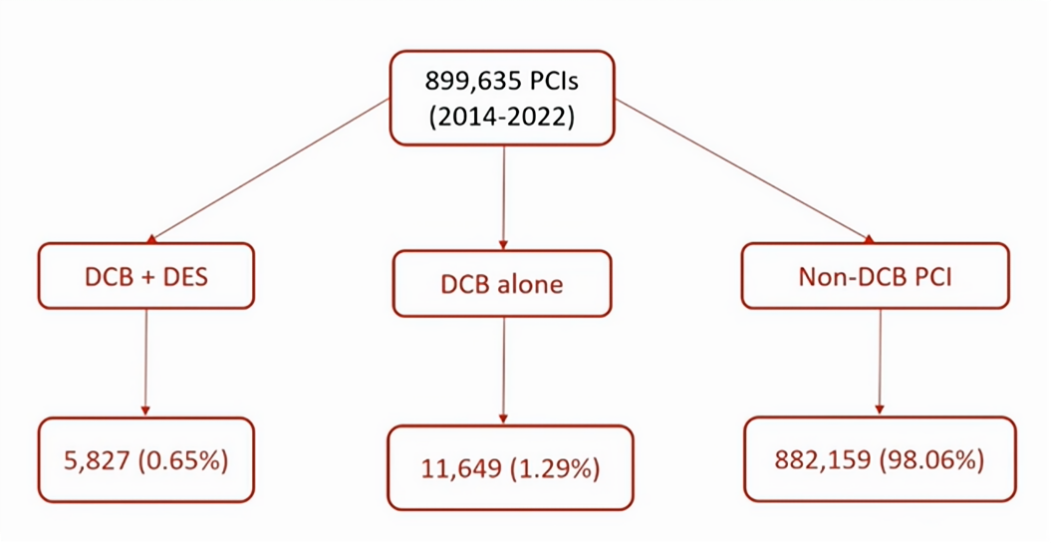 DCB最初应用于治疗支架内再狭窄(ISR)病变,但近年来其在原发性动脉狭窄治疗中的应用频率显著增加,已成为主要治疗方式之一。在2024 ESC关于慢性冠脉综合管理的指南中,DES仍被作为IA类推荐为DES-ISR的首要治疗方式。然而,在比较DCB与DES治疗ISR的长期结果中,许多研究发现DES虽略优于DCB,但两者间并无显著差异。另外,目前的文献中缺乏关于在大规模人群和特定情况下(包括血管造影和临床适应证)使用DCB治疗频率的最新数据。